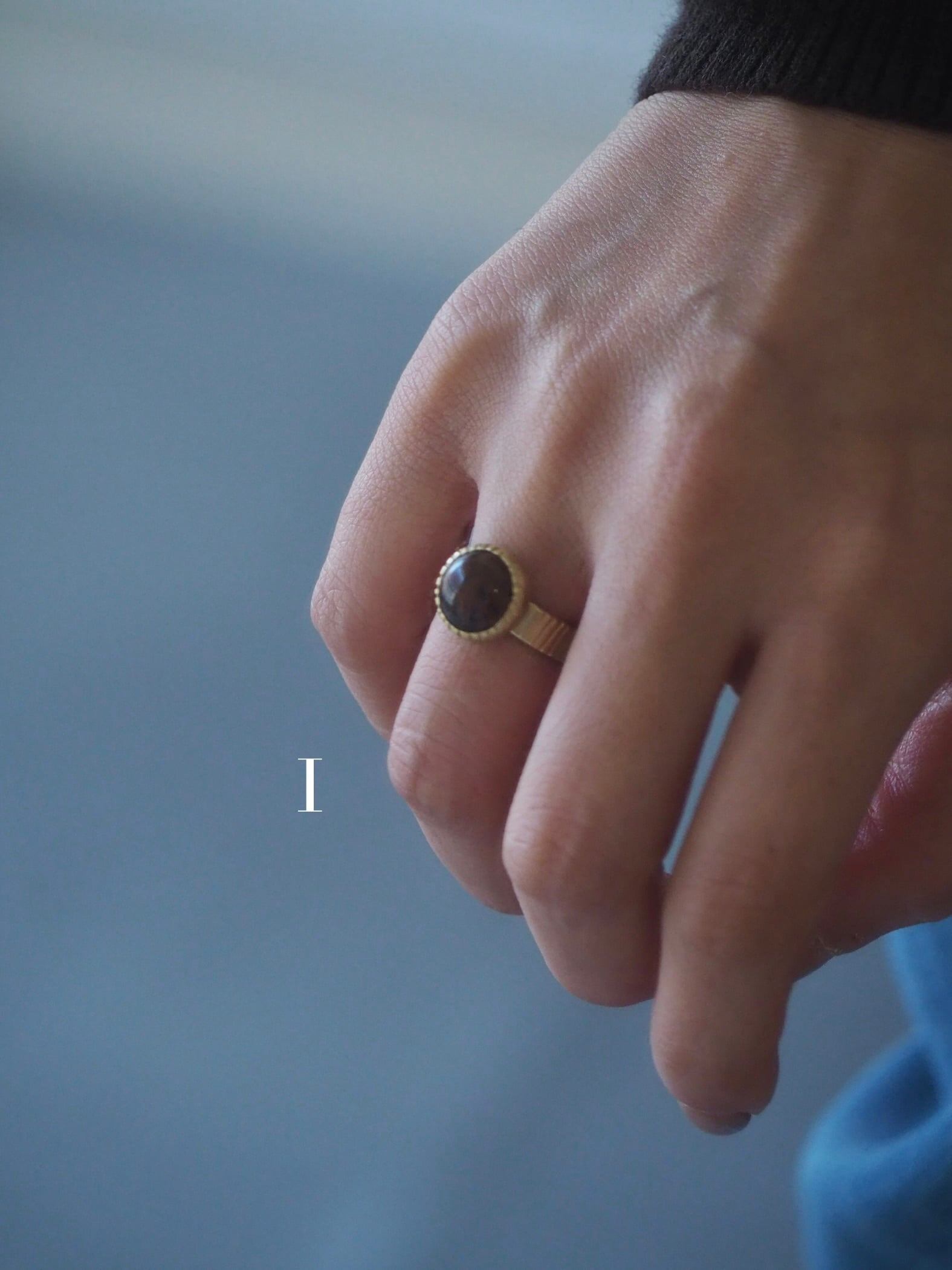 バンド部分にテクスチャーが施された調整可能なストーンリング