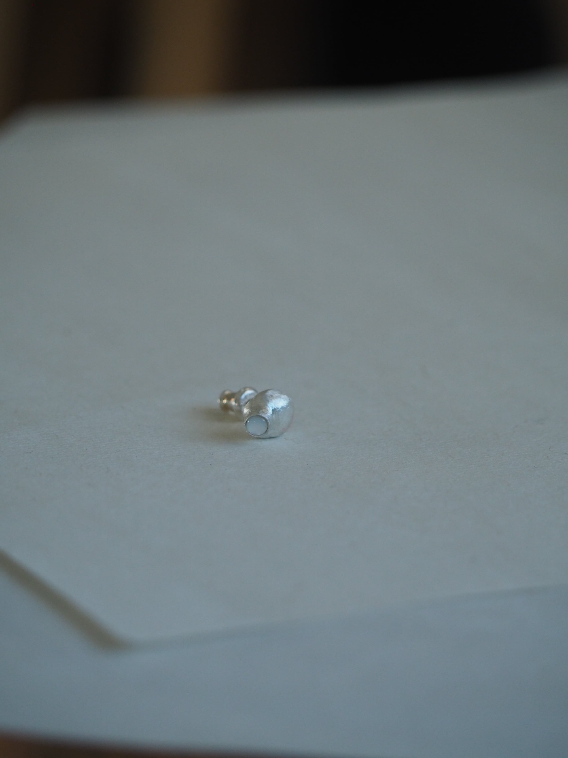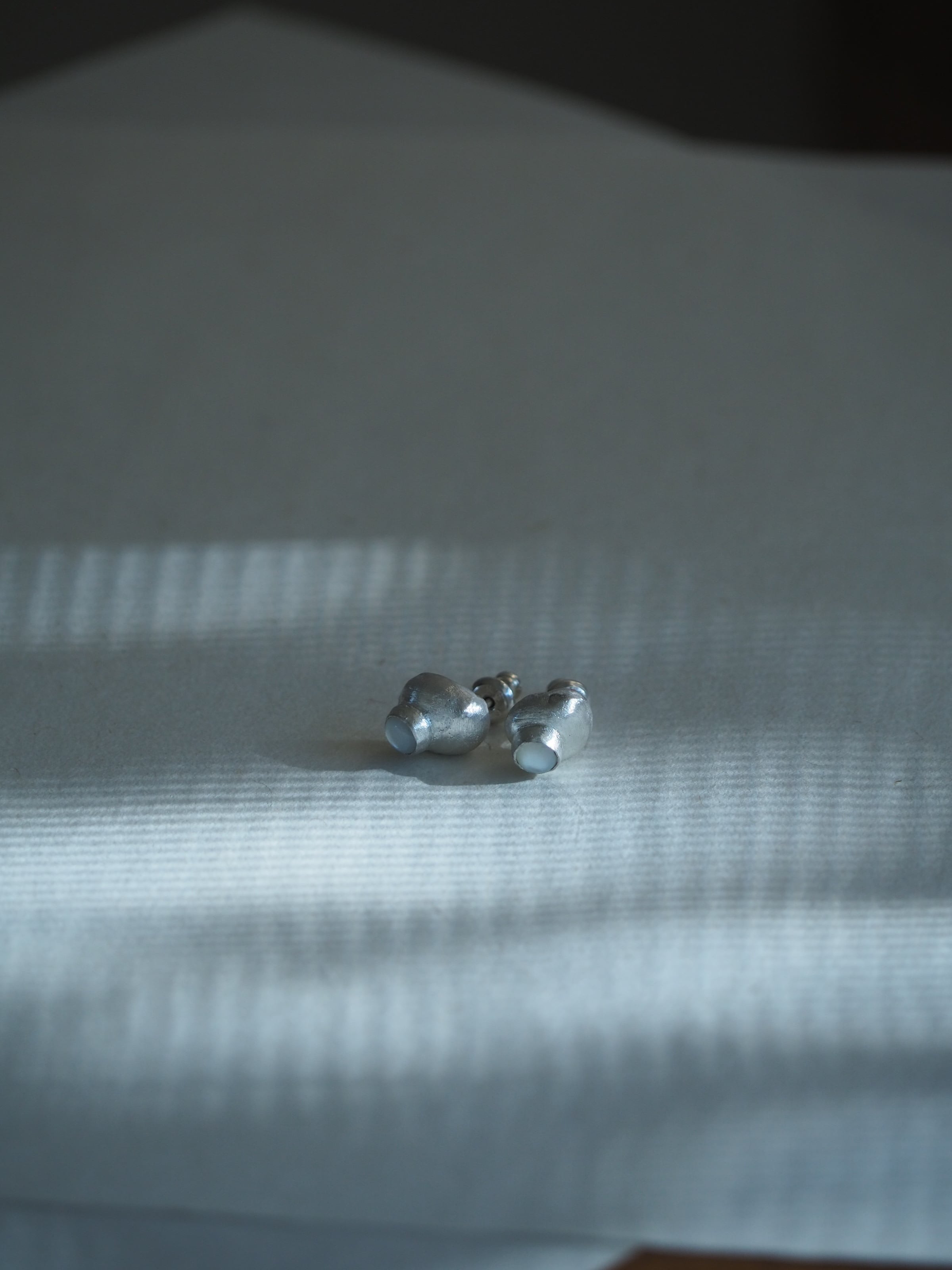 不均等なシルバーの粒にホワイトシェルを施した小さなピアス