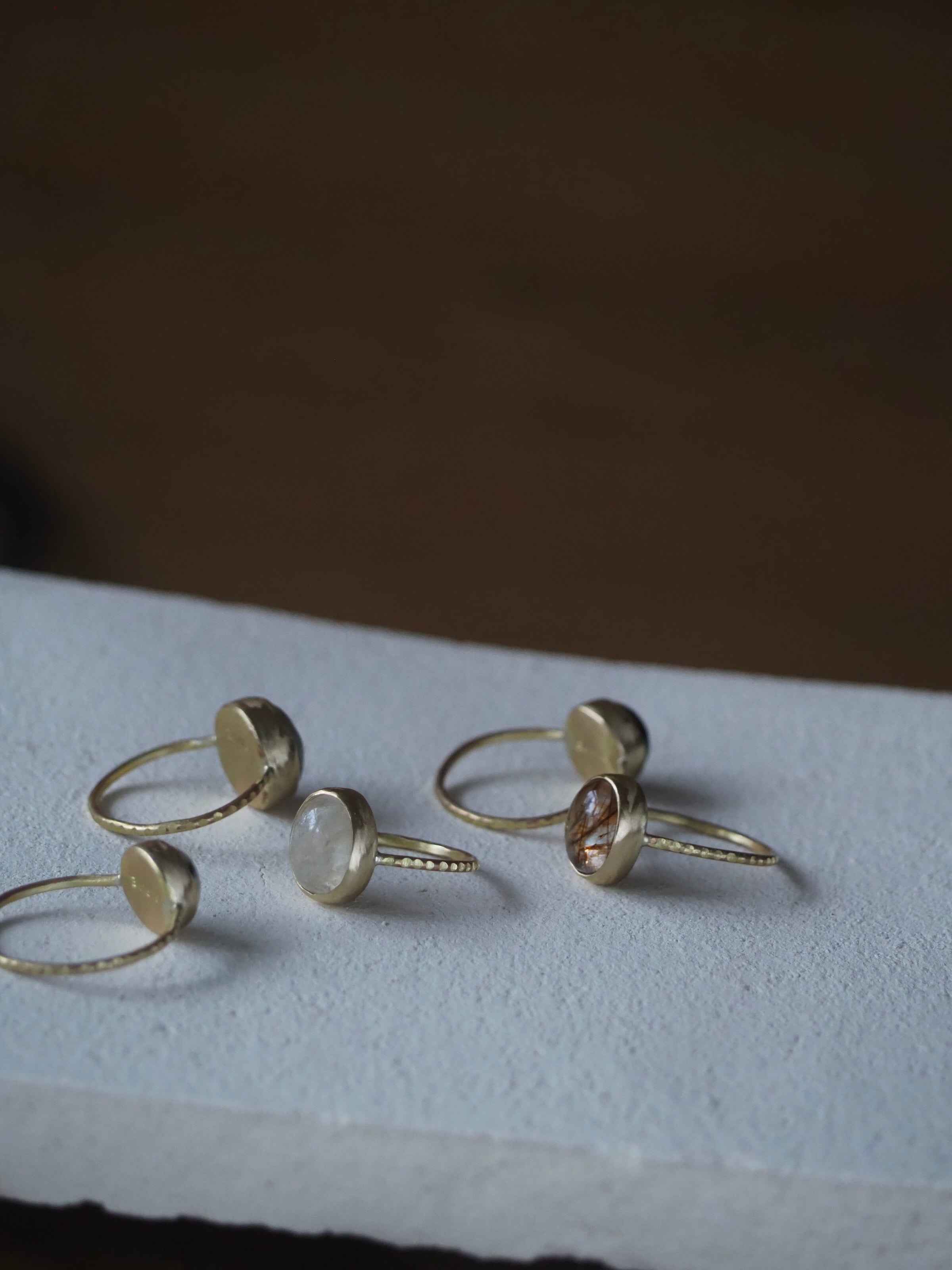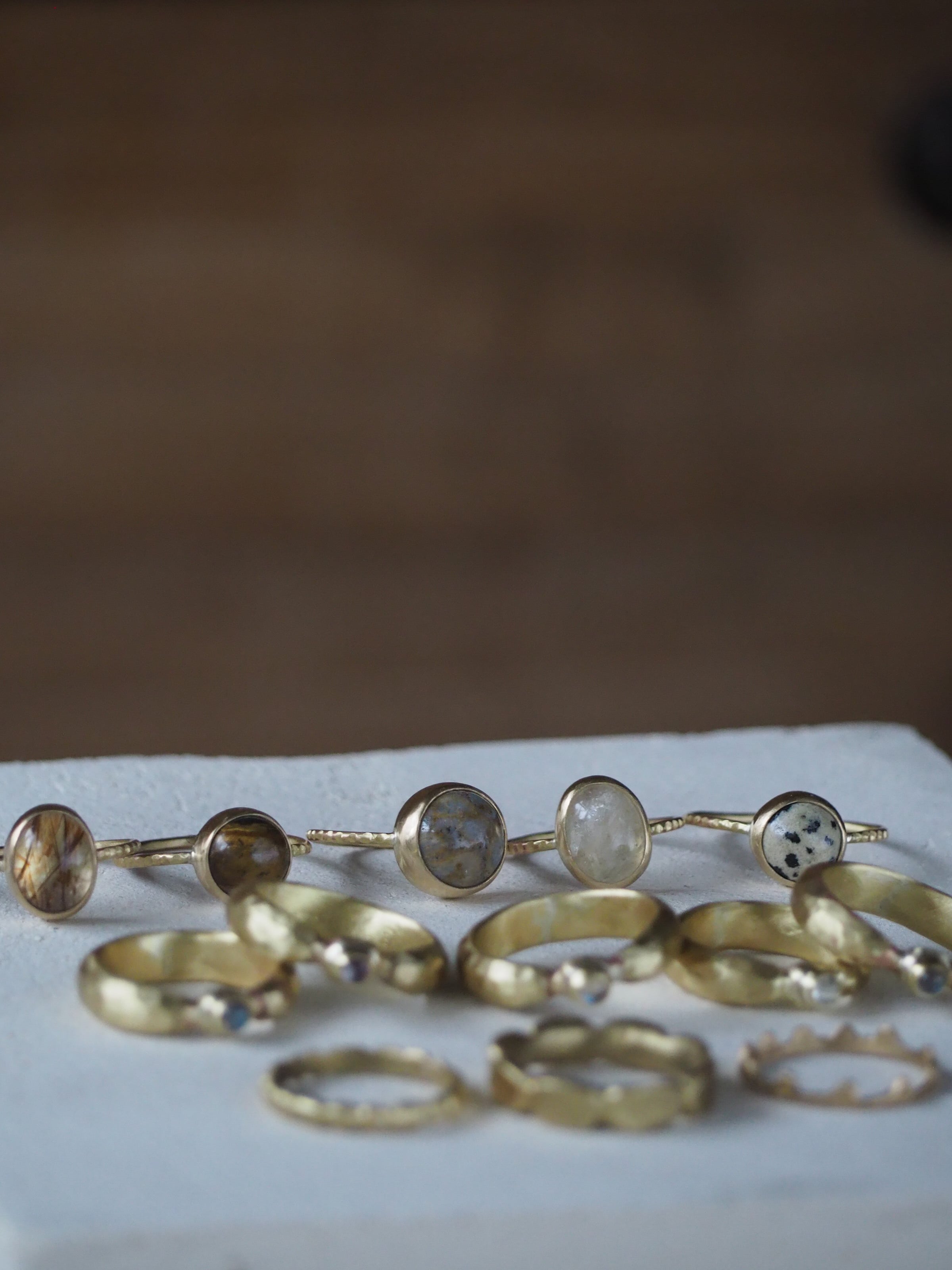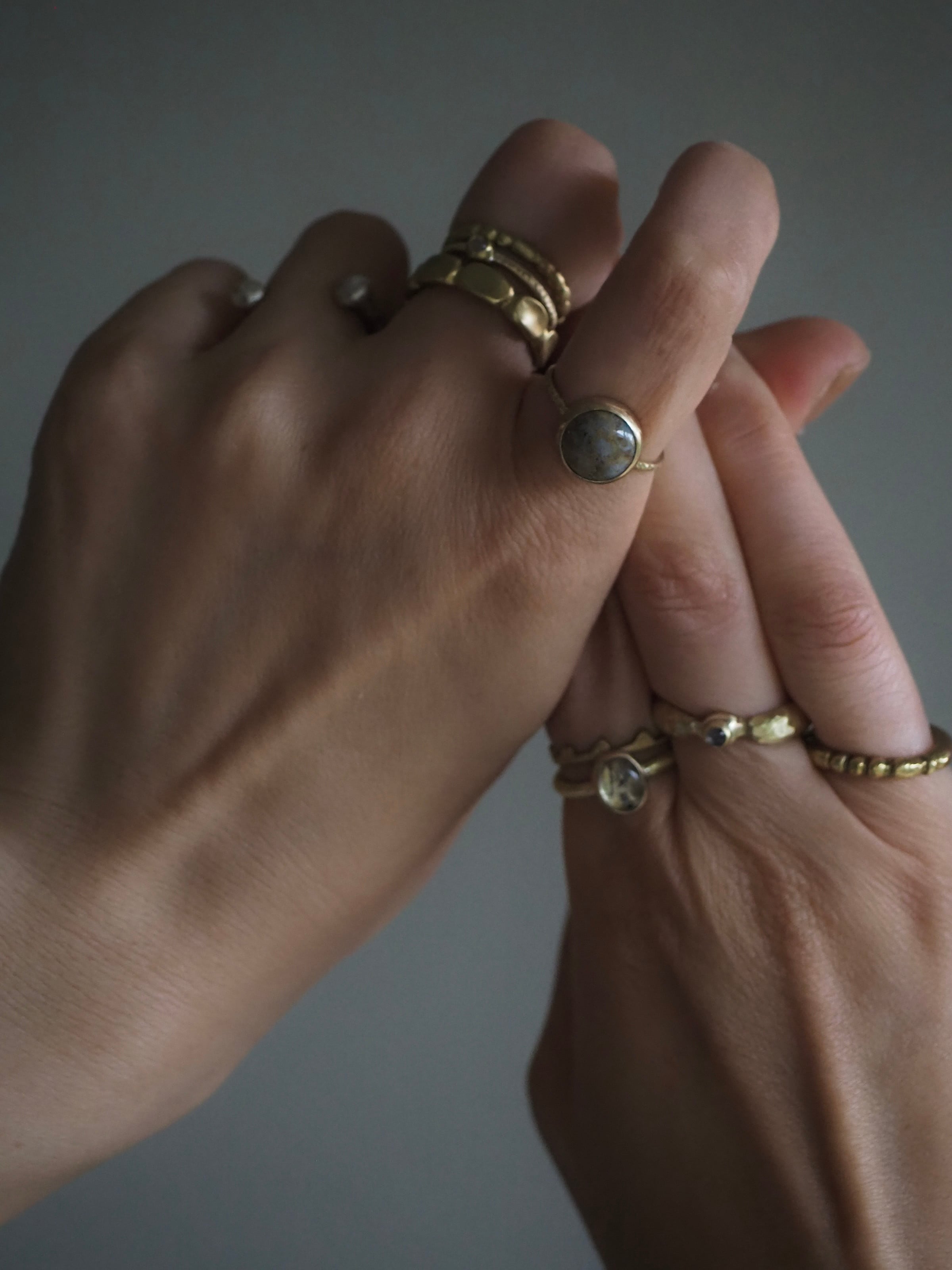 落ち着いて柔らかい色味のFossil Coralを使用したリング